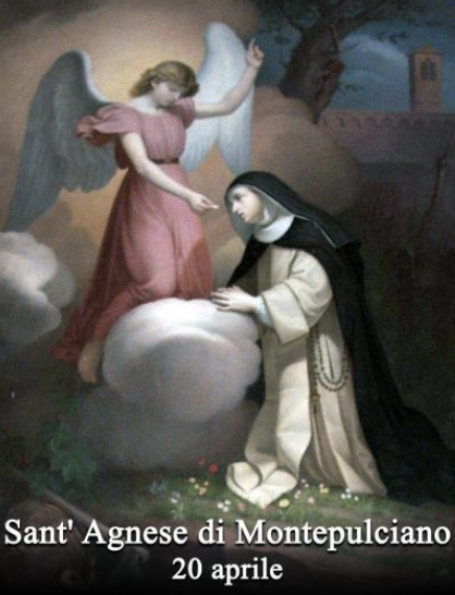 Nata in anno incerto da famiglia nobile di Montepulciano, a nove anni è in collegio dalle monache, dette ‘Saccate’ dal loro particolare abito. E lì poi rimane. Cinque anni dopo accompagna la maestra delle novizie suor Margherita a Proceno (Viterbo) per fondarvi un nuovo monastero. Passa un altro anno e incredibilmente ne diventa superiora: lei, Agnese, a quindici anni, con approvazione pontificia; e “per la visibile forza esercitata dalla sua santità”, come scriverà più tardi fra Raimondo da Capua nella sua entusiastica biografia di Agnese.