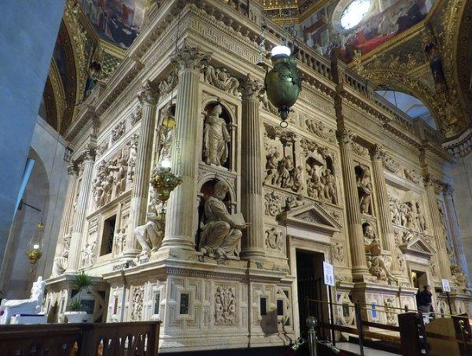Il Santuario della S. CASA di LORETO è nelle Marche, a poca distanza dal mare. La S. Casa è custodita all’interno della Basilica edificata tra il 1469 e 1587 ed è il cuore del Santuario. Essa è costituita da tre pareti che secondo l’antica tradizione sarebbe la parte antistante la grotta di Nazareth dove nacque e visse la B. V. Maria.
