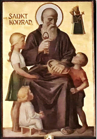 Frequentava la chiesa e andava in pellegrinaggio nei santuari. Avrebbe potuto condurre l’azienda di famiglia, ma Giovanni desidera aderire al Terz’Ordine Francescano, perciò regalò la sua eredità ai poveri e diventò cappuccino col nuovo nome di Corrado. Per tutta la vita fu portinaio del Convento di S. Anna ad Altötting (Baviera, luogo di nascita di papa Benedetto XVI, Joseph Ratzinger). Chiamato “Santo portinaio”, ai poveri che suonano la campanella del convento, apriva accogliendoli con un sorriso e non era mai né nervoso né arrabbiato. Aveva pazienza, confortava, incoraggiava, distribuiva gratuitamente pane, minestra e birra leggera prodotta dai frati stessi.