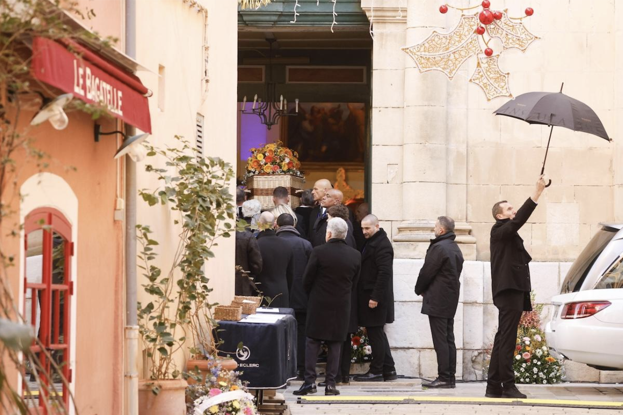 La bara dell’ex attrice francese Brigitte Bardot viene portata in chiesa per il funerale