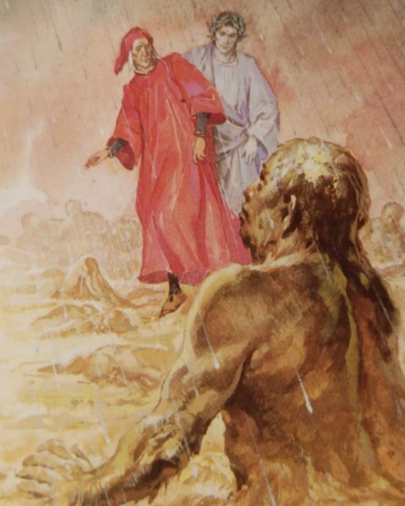 A questo punto Dante ribatte dicendosi pronto a piangere per l’angoscia provocata dalla pena di Dante fa a Ciacco tre domande riguardanti la loro comune patria, Firenze: Dante vuol sapere quale sarà l’esito delle lotte politiche, se vi sono cittadini giusti, quali sono le ragioni delle discordie intestine. Ciacco risponde alla prima domanda con una oscura profezia, dicendo che dopo una lunga contesa i due partiti (Guelfi Bianchi e Neri) verranno allo scontro fisico (zuffa di Calendi-maggio del 1300) e i Bianchi cacceranno i Neri con grave danno.