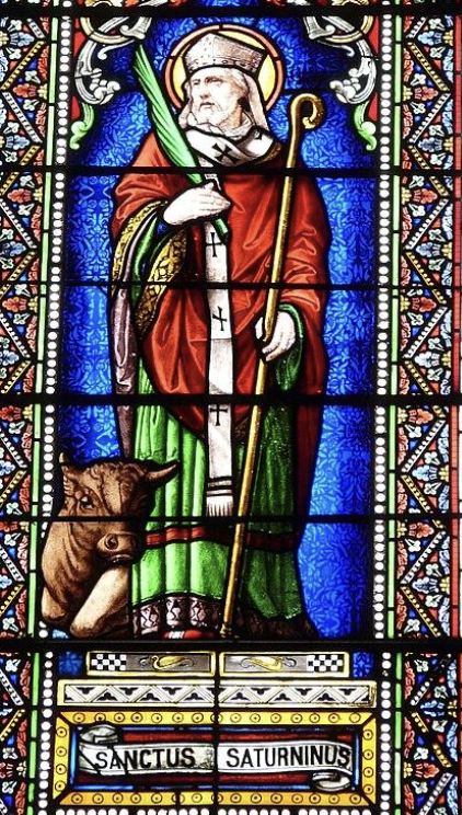 Al rifiuto del vescovo gli inferociti astanti lo afferrarono e lo legarono al collo del toro che fuggì trascinandosi dietro il vescovo. Saturnino morì poco dopo e il suo corpo venne raccolto da due pie donne e posto “in una fossa profonda”. Quando nel secolo VI i ritrovarono le reliquie del martire, si edificò la chiesa dedicata a Saint Sernin-du-Taur.